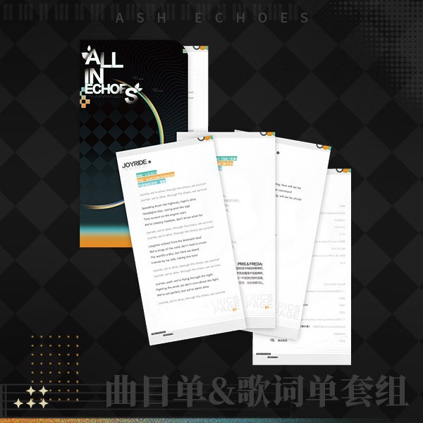 1LP喷溅彩胶 1组歌词单 其他周边:1件仿唱片机亚克力古美,9片仿唱片亚克力件,1张游戏内头像兑换卡